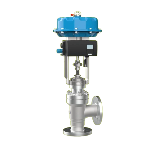 The ANGLEVENT angle valve is used quite plant specific. For the most diverse applications, the bodies are made of a wide variety of cast and forged materials and the interior parts are adapted to the specific operating situation. This modular design principle promises accurate process control that, together with the proven ARCA clamping seat, characterizes each of our angle valves. Depending on the process, medium can flow through the control valve in or against the closing direction of the plug. Our angle valves based on forged housings are also available for nominal sizes ≤ DN65 with welding ends. The medium flows into the angle valve laterally or from below, leaving the control valve in a reduced state after only one flow redirection. Our angle valves have also proven themselves in difficult operating conditions and acoustically relevant applications.