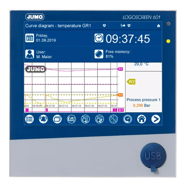 The paperless recorder visualizes plants and process states. It also records process data in a tamper-proof manner. The device can be adapted to different requirements (such as PROFINET with 24 analog and 24 digital inputs and outputs each) through various connection configurations.